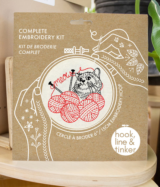 Knittin' Kitten Embroidery Kit | Hook, Line & Tinker