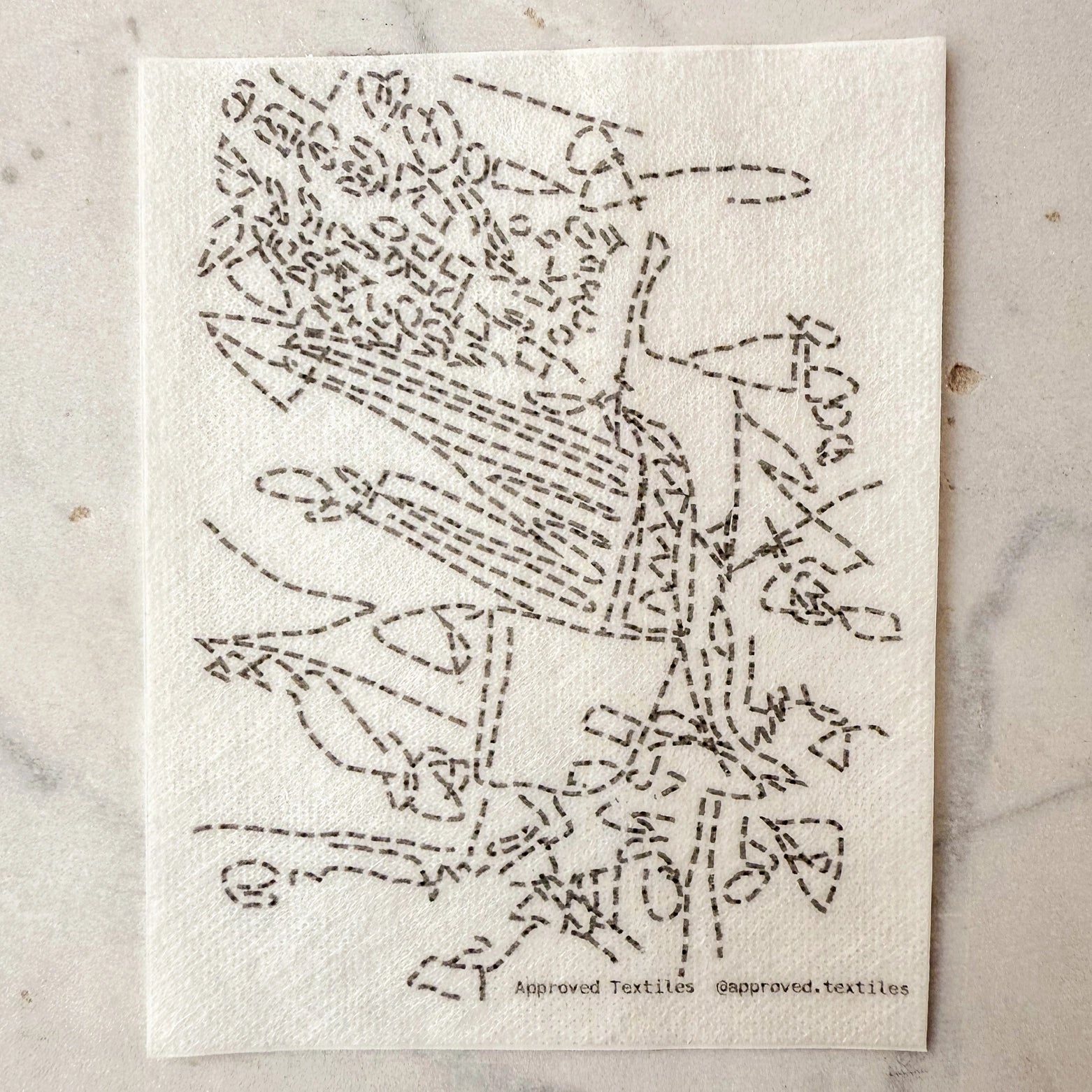 Inspired by Eva Hesse’s time at Oberlin, this artisan mending transfer echoes the quiet intensity of her early line drawings—sensitive, searching, and beautifully unresolved. Meant to be stitched slowly, it invites you to trace form, imperfection, and feeling through cloth.