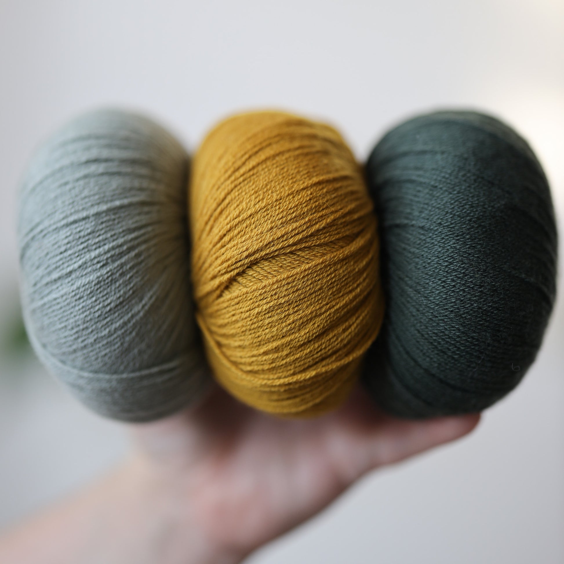 Real-tree: Knitting for Olive Merino in Bottle Green, Dusty Artichoke, and Mustard