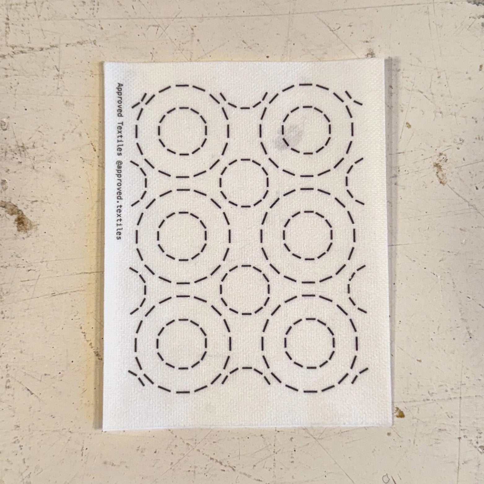 A quiet revolution. This minimalist transfer is for those drawn to movement, rhythm, and the grace of circular paths. Inspired by orbits and planetary pull, “Orbit” brings gentle curvature to your mending practice—an invitation to revolve, not rush.