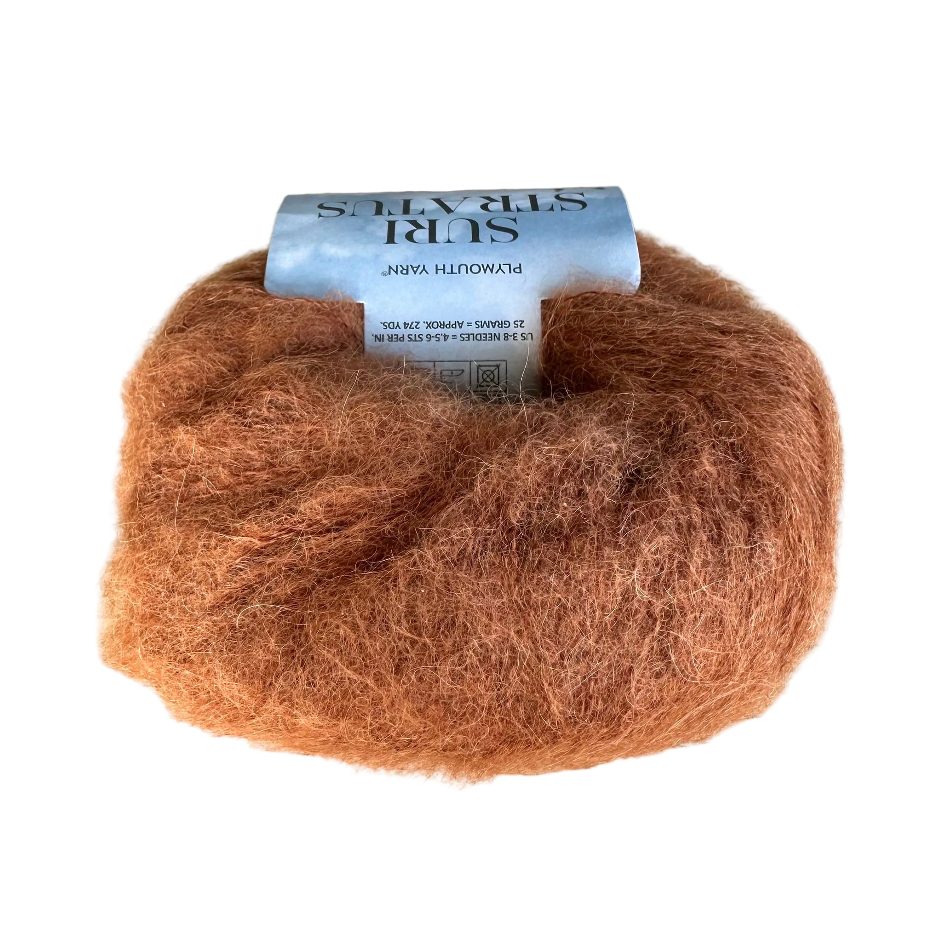 We love a fluffy lace weight yarn! This one is made with lovely Suri alpaca fiber. This lace weight yarn has a halo of super soft and fine Suri alpaca. It is wonderful when held with something plain to add a really great texture. You can of course make gossamer lace pieces with it by itself. We also recommend holding it with a fingering or DK weight yarn in either a similar or contrasting color to add a layer of fluff to your garments.